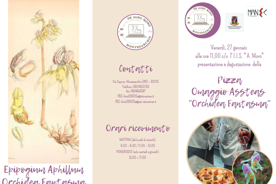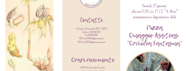 SAPERI E SAPORI: non uno slogan ma la sintesi della pizza omaggio Assteas “Orchidea fantasma” ideata dagli studenti e dai docenti di scienze dell’alimentazione e di cucina dell’istituto Superiore “Aldo MORO” di Montesarchio, diretto dalla Dirigente Rosa Tangredi.