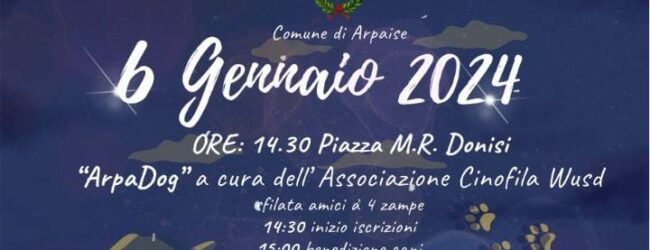 Il prossimo Sabato 6 Gennaio 2024 , nella festa dell’Epifania che segna il termine delle festività natalizie, il Comune di Arpaise informa i cittadini e l’invita a partecipare a due importanti appuntamenti per vivere tutti insieme, grandi e piccoli, la festa dell’Epifania, un occasione unica dopo aver festeggiato il Capodanno, stare insieme in comunità tra gli amici a 4 zampe ed i piccoli che attendono l’arrivo della Befana.