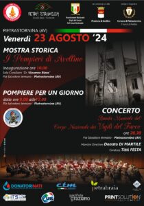 E’ tutto pronto a Pietrastornina per l’iniziativa del Comando dei Vigili del fuoco di Avellino e del Circolo Socio Culturale Petra Strumilia in collaborazione con l’Associazione Nazionale del Corpo Sezione di Avellino e con l’associazione Donatori Nati che si terrà a Pietrastornina in Piazza V. Veneto il 23 agosto a partire delle ore 8.30 con una raccolta straordinaria di sangue “Estate di solidarietà – dona il sangue anche in vacanza”.