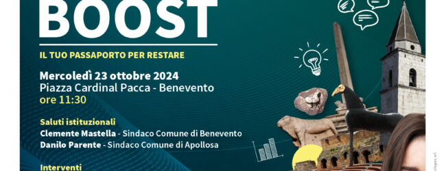 La partecipazione all’evento è a numero chiuso in quanto i posti sono limitati pertanto se interessati a partecipare è necessario procedere con prenotazione entro venerdì 18 Ottobre scrivendo alla mail staff@projeniawork.net o scrivendo all’indirizzo info@beneventoboost.it