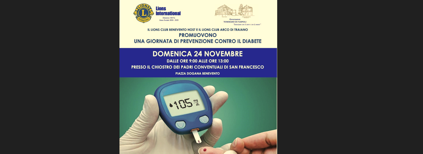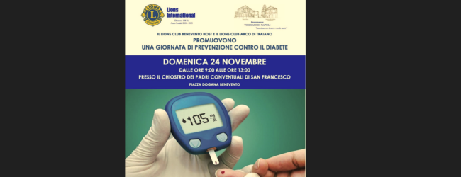 L’evento è promosso dal Lions Club Benevento Host e dal Lions Club Benevento Arco Traiano rientra nell’ambito della settimana dedicata alla giornata mondiale del diabete.
