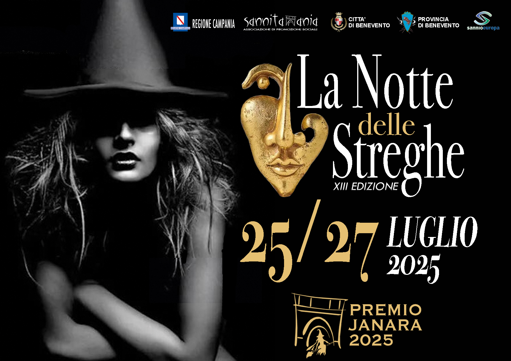 Nel centro storico di Benevento il 25-26-27 luglio 2025 ritorna la magia della ‘Notte delle Streghe’. Un appuntamento imperdibile, giunto alla sua tredicesima edizione, e che di anno in anno, richiama tantissime persone, affascinate dalla leggenda delle Janare. Un’edizione 2025 dedicata all’experience: un percorso affascinante tra musica, poesia, arte, teatro. Un’esperienza immersiva tra streghe, misteri e antichi rituali per far rivivere tutta la bellezza di una città magica
