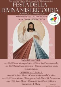 Domenica 27 Aprile Celebrazione della Festa della Divina Misericordia, con le Sante Messe e la Preghiera della Coroncina alla Divina Misericordia, pertanto