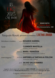 Il 18 dicembre 2025, alle ore 16:00, presso Palazzo Mosti in Via Annunziata 138 a Benevento, si terrà la presentazione del romanzo L’ultima Janara di Pasquale Rosati, un’opera dedicata alla più antica e suggestiva leggenda beneventana legata al mito delle janare.