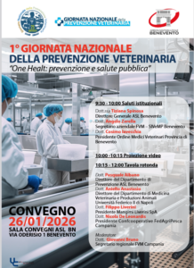 L’ASL Benevento promuove un incontro aperto sul ruolo della prevenzione veterinaria In occasione della Giornata Nazionale della Prevenzione Veterinaria, l’ASL di Benevento organizza il convegno “One Health, prevenzione e salute pubblica”, in programma lunedì 26 gennaio, dalle 9.30 alle 12.00, presso la Sala Convegni di Via Oderisio.