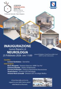 Mercoledì 25 febbraio, alle ore 11.00, presso il Padiglione “Santa Teresa della Croce” dell’AORN San Pio di Benevento, guidata dal direttore generale Maria Morgante, saranno inaugurati i nuovi spazi destinati alla UOC Neurologia.