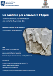 La Soprintendenza Archeologia Belle Arti e Paesaggio per le province di Caserta e Benevento promuove la conferenza stampa dal titolo “Un cantiere per conoscere l’Appia: un monumento funerario romano nel Comune di Apollosa”, che si terrà il 10 marzo 2026 alle ore 17.30 presso l’aula consiliare.