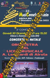 Gli appuntamenti della rassegna natalizia MusiCometa Sannio, organizzata e promossa dall’Accademia Progetto Musica AcliArteSpettacolo Sannio, in programma per domani, 30 dicembre 2021 e per il 4 e l’8 gennaio 2022 sono stati rinviati a data da destinarsi.