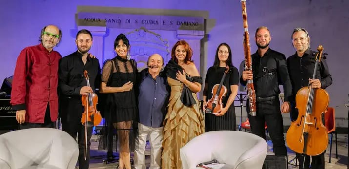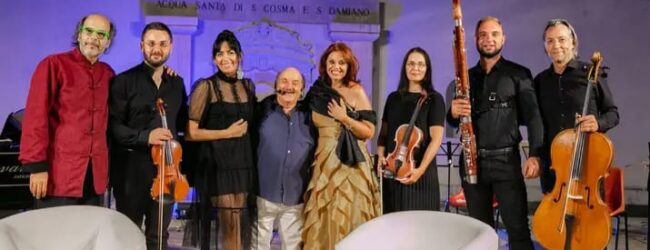 In una calda e bella sera d’estate, allegra, simpatica e divertente, nella piazza gremita di pubblico delle grandi occasioni, tra il Santuario dei Santi Medici Cosma e Damiano ed il secolare Tiglio, dove fin dai tempi antichi i cittadini si riunivano per vivere momenti di unione e di socializzazione, dopo il saluto ed il benvenuto agli artisti ed ai numerosi presenti, da parte del Sindaco di Arpaise Vincenzo Forni Rossi,l’attore ed artista partenopeo di fama internazionale Salvatore Misticone, che grazie alle sue doti teatrali e canore, ha avuto uno strepitoso successo nei suoi numerosi film e spettacoli, tra cui quello di “Scapece” in “Benvenuti al Sud”,è stato intervistato dalla giornalista di Lab Tv Maresa Calzone, dove nel corso della serata il Maestro Leonardo Quadrini e la Soprano Silvia Cozzolino hanno eseguito brani della tradizione napoletana, tra cui “O Surdato Nnammurato”, “A Vucchella”, “Io t vurria vasà” e tanti altri, nel corso della quale ha cantato anche Salvatore Misticone dando prova delle sue qualità canore, oltre che teatrali.