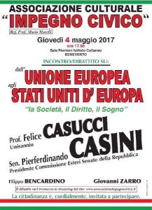 Pierferdinando Casini ritorna a Benevento. Accolto da Gennaro Santamaria  e ospite dell’associazione culturale “Impegno Civico”, l’ex “attor giovane” postdemocristiano si è presentato al Cattaneo atteso da un parterre assai variegato e comunque indicativo del momento magmatico che si vive in città come nel Paese. Lo spunto è l’Europa e le sue criticità, la presenza è da annoverare tra i posizionamenti che l’attualità politica rende ancora possibili, specie se si andrà a votare con un sistema proporzionale. E allora personaggi come Casini tornano prepotentemente alla ribalta e diventano espressione di un puzzle politico tutto ancora da comporre. Lui si schermisce ma è pura pretattica
