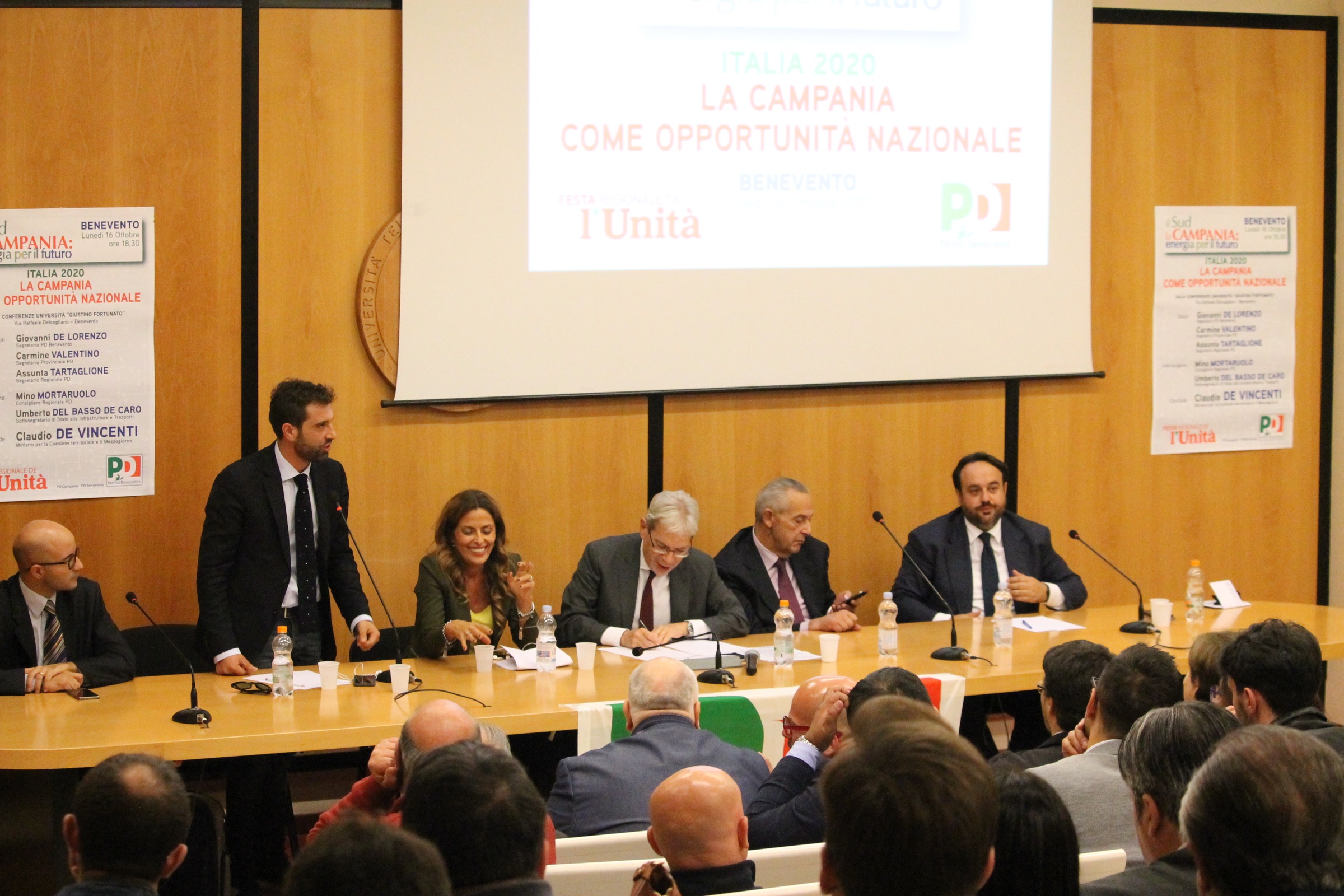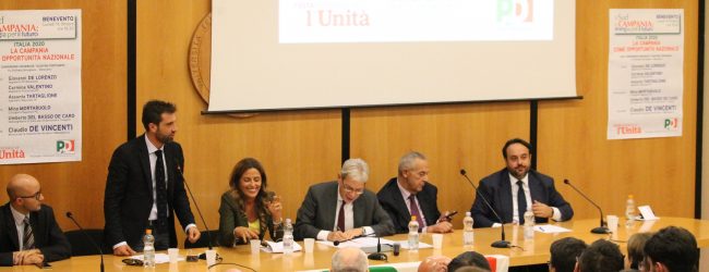 A presiedere l’incontro sul tema “Italia 2020. La Campania come opportunità nazionale” è stato il Ministro per la Coesione territoriale e per il Mezzogiorno, Claudio De Vincenti. A intervenire anche il Sottosegretario di Stato alle Infrastrutture e ai Trasporti, on. Umberto Del Basso De Caro, il segretario regionale Pd Assunta Tartaglione, il segretario provinciale Carmine Valentino, il segretario cittadino Giovanni De Lorenzo.