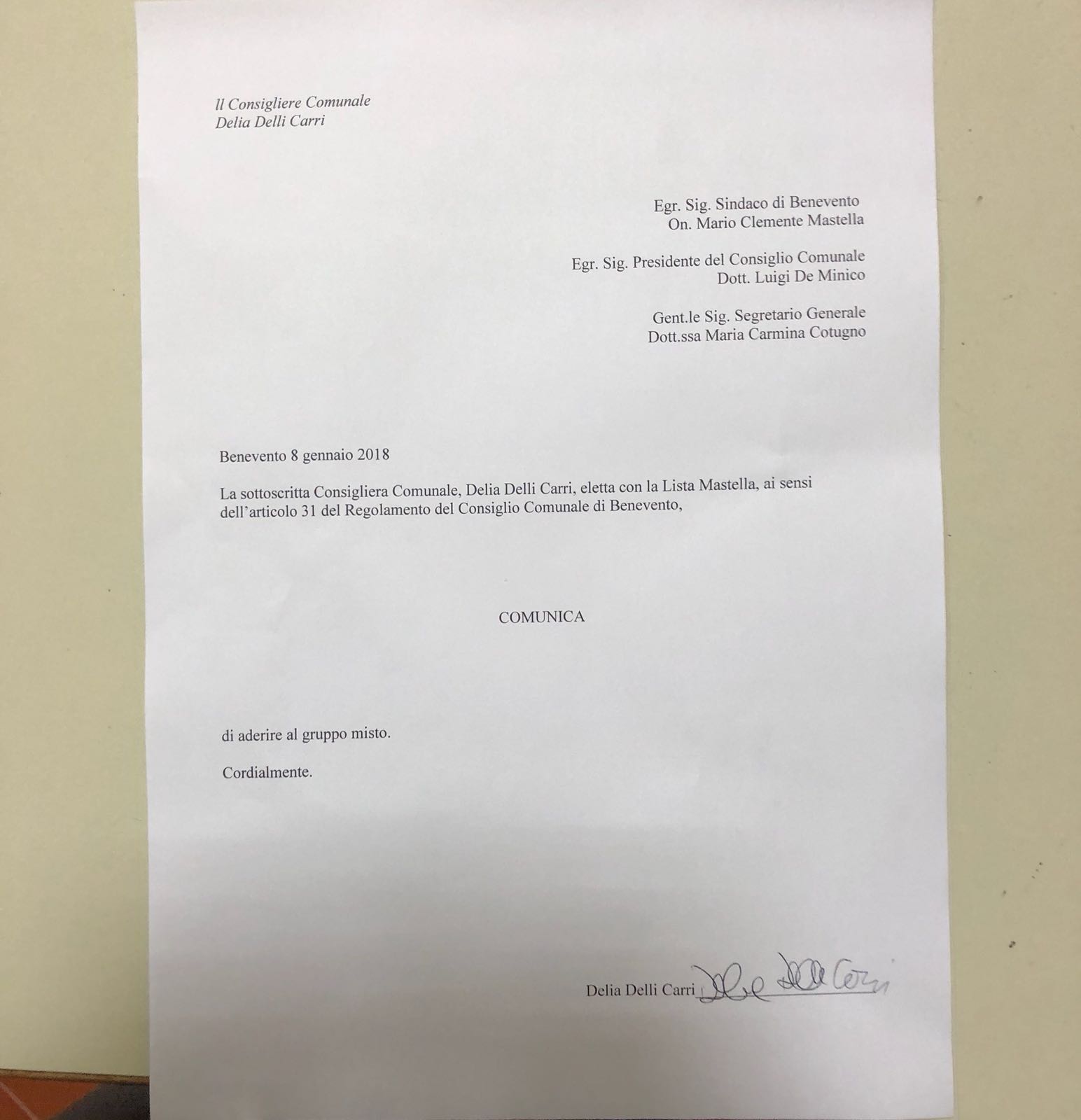 Delia Delli Carri fa dietrofront e opta per il gruppo misto. Torna, la mazzoniana, alla prima scelta e pur manifestando amicizia e vicinanza al gruppo dei Moderati più forte è la volontà di non rompere del tutto i legami col sindaco. Ieri un incontro infiormale con Renato Parente e probabilmente la decisione di intraprendere posizioni meno estreme e di minore intensità nei confronti della maggioranza.