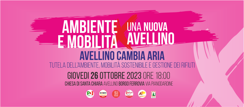 “Avellino cambia l’aria” sarà il tema al centro dell’’assemblea pubblica convocata da Pd, M5S, Sinistra italiana, Si Può, App e Controvento per giovedì 26 ottobre alle ore 18 presso l’auditorium della Chiesa di Santa Chiara in via Pianodardine, al Rione Ferrovia. Si tratta del quarto appuntamento fissato dalle forze politiche e dalle associazioni che danno vita alla coalizione di centro-sinistra ad Avellino: si discuterà di tutela dell’ambiente, mobilità sostenibile e gestione del ciclo dei rifiuti. L’assemblea è aperta alla partecipazione delle associazioni e dei comitati che operano nella città e nel territorio circostante.