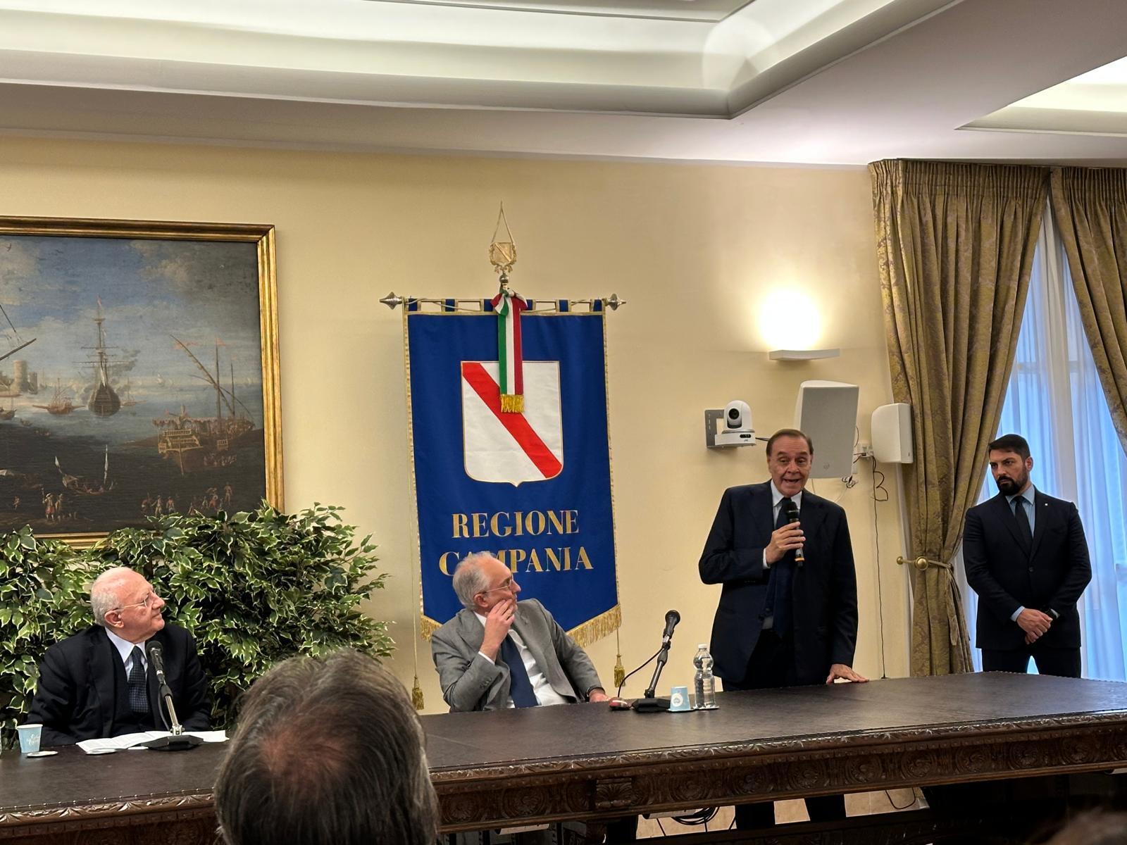 Dopo avere parlato al telefono col ministro Urso per la faccenda Solitek, un indefesso Mastella ha incontrato a Napoli il Presidente della Regione De Luca per firmare l’accordo per i PRIUS, i programmi di rigenerazione urbana destinati alle città della Campania, per i finanziamenti della nuova programmazione. Con lui il vice De Pierro e l’immancabile Antonio Picariello.