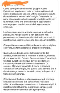 Così scrivevano nella foto allegata, appena 4 mesi fa, i consiglieri di un gruppo di minoranza. Tra loro anche quello stesso consigliere che ieri, durante la riunione del consiglio comunale, si è reso protagonista di un episodio oltremodo increscioso.