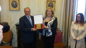 La Presidente dell’Associazione, Carmela D’Aronzo, ha quindi consegnato all’onorevole Grasso una targa raffigurante il Gladiatore sannita, una copia del libro del Museo del Sannio e dei prodotti dolciari tipici di Benevento . Il presidente Grasso le ha donato un libro sulla storia del Senato della Repubblica italiana.