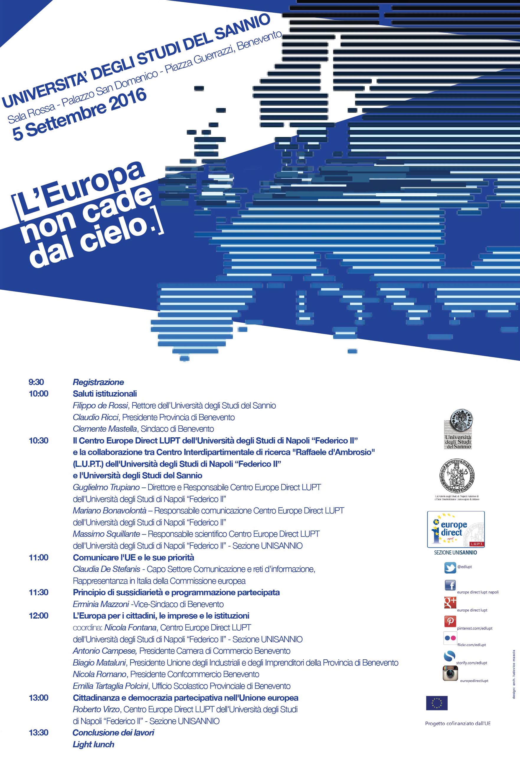 Il convegno offrirà l’opportunità per presentare la sezione Unisannio del Centro Europe Direct LUPT dell’Università degli Studi di Napoli Federico II e le attività programmate.