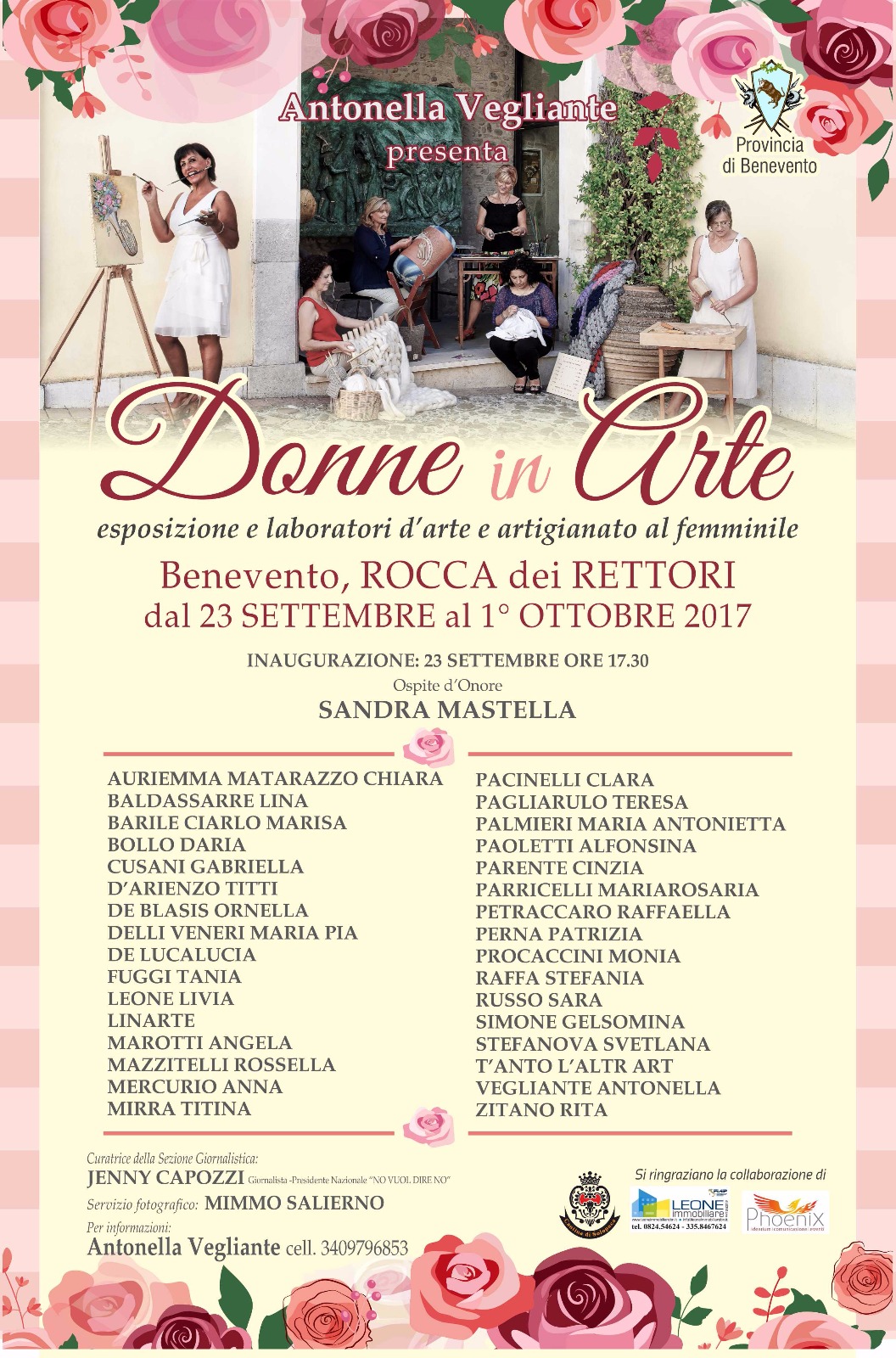 Saranno ancora le donne le protagoniste assolute della manifestazione culturale promossa, organizzata e presentata da Antonella Vegliante con il Patrocinio dell’Ente Provincia di Benevento “Donne in Arte”, questo il titolo dell’evento che sarà inaugurato alla Rocca dei Rettori, nella città delle streghe, il prossimo 23 settembre. Con inizio alle ore 17,30, ospite d’onore Sandra Lonardo Mastella, al via “esposizione e laboratori d’arte e artigianato al femminile” che occuperanno la scena dell’antico Castello Longobardo fino al 1° ottobre. A rappresentare la Provincia di Benevento la conigliera Angela Papa.