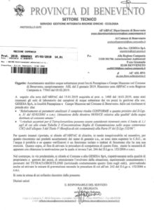 Con la stessa lettera la Regione-Servizio Ecologia ha chiesto alla Provincia di Benevento di “svolgere le opportune indagini volte ad identificare il responsabile dell’evento di potenziale superamento e sentito il Comune, di informare lo scrivente settore, ai sensi dell’art. 244 del D.Lgs 152/06, se ricorrono le condizioni per dare avvio alla procedura per la bonifica dell’area interessata dal fenomeno”.