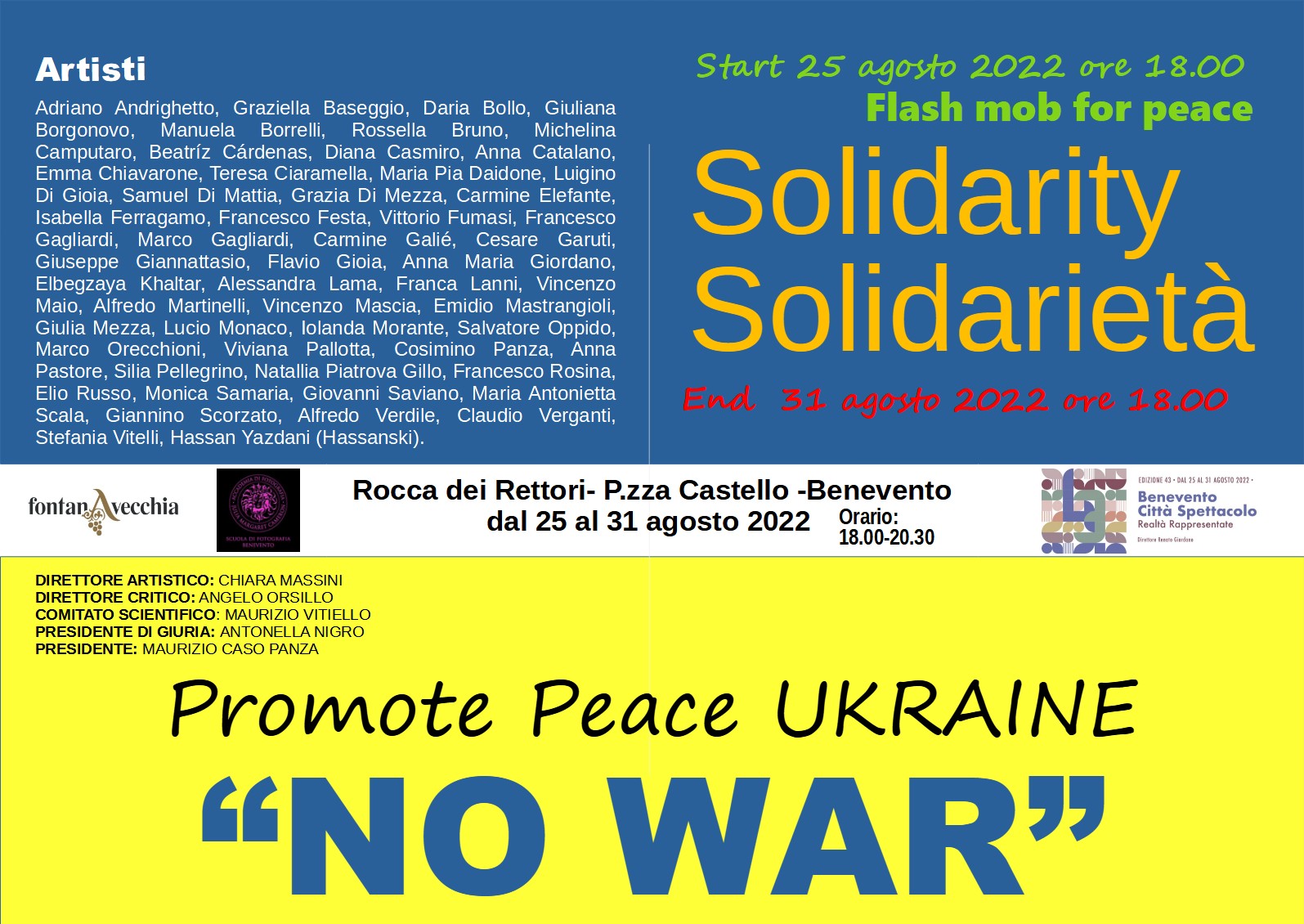 L’inaugurazione verrà anticipata dal Flash Mob “Promote Peace UKRAINE” per il popolo Ucraino in quanto è una valutazione oramai della quotidiana normalità la guerra, l’aggressione, la violenza. L’esempio agevola l’azione e suscita spirito di emulazione ci riferisce Maurizio Caso Panza, presidente della BeneBiennale; mi piace pensare così che si migliori seguendo gli esempi positivi e l’arte ne diviene propulsore spontaneo.