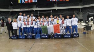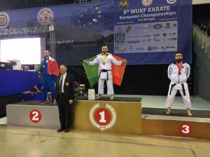 Sabato 8, giornata dedicata alle categorie Ragazzi. Domenica 9, Sfilata dei Finalisti, Finali delle categorie Juniores e Seniores, e premiazioni dei Vincitori. Competizione intensissima con ben 10 aree di gara e TV Streaming. Il nostro Maestro, Danilo Campolattano, Atleta della Nazionale Italiana FESIK, è stato uno dei 18 Atleti convocati a prender parte alla Competizione. La Spedizione degli Atleti Azzurri FESIK è stata di grande successo: su 18 Atleti Partecipanti, 7 Ori, 8 Argenti e 18 Bronzi, per un bottino di ben 33 medaglie portate a casa dagli Azzurri. Campolattano si è piazzato al Primo Posto nella categoria Seniores Shotokan, diventando così CAMPIONE EUROPEO 2017. Dopo l’Argento ai Mondiali di Dublino 2016 e il Bronzo agli Europei di Montichiari 2016, riesce a salire sul gradino più alto del podio, tenendo alto l’onore Italiano, Sannita e della Shinken Benevento (associazione presso cui insegna). Grande soddisfazione per tutti e grande soddisfazione per la SHINKEN! Come diciamo sempre, il duro lavoro alla fine viene sempre ripagato. Forza e Onore!