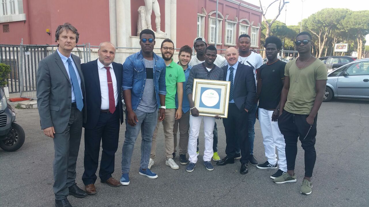 Euforia e soddisfazione ieri alla sala d’onore del CONI di Roma per la consegna del Premio Bearzot sociale perchè veniva assegnata al comitato di Benevento questo importantissimo riconoscimento che ha acceso i riflettori del mondo sportivo italiano, tutto presente per l’occasione, sul tema portato in gara dai sanniti per la Kunta Kinte CUP.