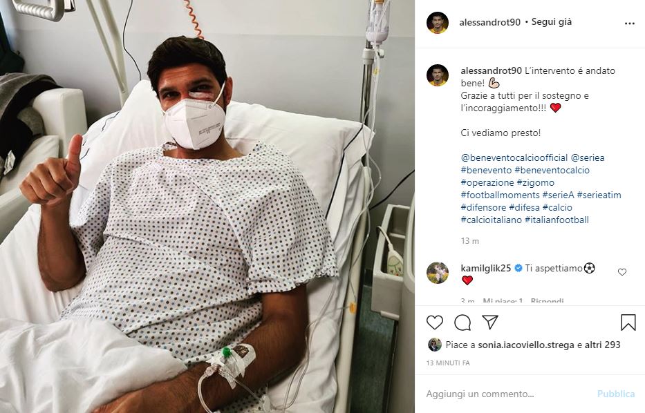 Ha scritto lo stesso difensore su un post pubblicato sul suo profilo Instagram. Ti aspettiamo, è il messaggio dei suoi compagni di squadra.