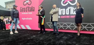 La partenza della V tappa della corsa in rosa è stata caratterizzata da una pioggia battente caduta sin dalla mattina. Saltati gli eventi coreografici e le manifestazioni di contorno, per difficoltà tecniche oggettive, il meteo, comunque, non ha scoraggiato i tantissimi appassionati che hanno circondato, ombrelli alla mano, il villaggio rosa di piazza Umberto I da dove è partita la corsa.