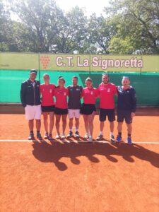 Nulla da fare invece per la squadra maschile del CT San Giorgio militante in Serie B1 che è uscita sconfitta in casa per 1-5 contro il San Mauro Country Club di San Mauro Torinese (TO). Unica vittoria è arrivata nel singolare dal giovanissimo tennista di casa Mattia Paolo Pagano che ha sconfitto in due set 6-4, 6-4 Riccardo Sosso. Sconfitta invece nelle altre partite: Luciano Barbarino 2-6, 3-6 contro Christian Felline; Roberto Pepe 3-6, 6-7 contro Riccardo Manzetti; Daniele Pepe 1-6, 2-6 contro Alessandro Giuliato; Magnino – Palatella 1-6, 0-6 contro Manzetti – Sosso; Pagano – Di Biase 0-6, 2-6 contro Giuliato – Felline. Dopo la giornata di riposo di domenica 4 giugno, domenica 11 giugno per la squadra maschile del CT San Giorgio sarà in trasferta a Rimini contro il Tennis Viserba.