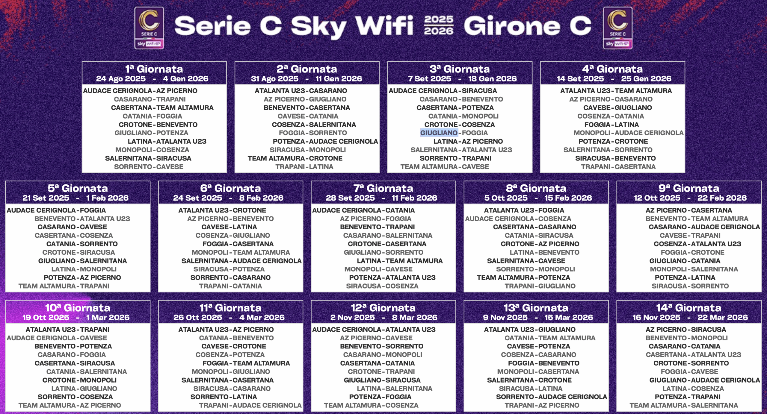 | 14 Set 2025 | Siracusa – Benevento | 25 Gen 2026 |