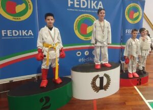 Domenica con risultati altalenanti, certamente legati a questa fase della stagione con gli agonisti ancora lontani dalla forma migliore e con arbitraggi non sempre imparziali. In ogni caso la Seishinkan si porta a casa altre due medaglie d’oro. La prima con Angelo MERCURI, atleta di Pago Veiano, strepitoso in tutte le prove, compreso la finale che lo vede vincente con un secco sei a zero. Il secondo oro arriva dalla beneventana Morena RUSSO, tra i master, che conquista meritatamente il primo posto con una prova di grande carattere. Tre gli argenti conquistati rispettivamente dal bravo Francesco BERNARDINIS, da Andrea MESISCA e Giuseppe Valerio VITIELLO, apparsi non al top della condizione e penalizzati anche dai giudizi arbitrali. Ottimo il bronzo di Eleonora PIACQUADIO, finalmente in crescita e di Simone Pio DE PAOLA, altro giovane atleta proveniente da S. Leucio del Sannio.