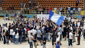Benevento festeggia la promozione in Serie B della Miwa Energia, squadra di basket, riuscita all’ultimo secondo di battere Caserta in gara 3 dei play-off con il punteggio di 54-52.A decidere il match una tripla di Spasojevic che ha fatto letteralmente esplodere di gioia il Palatedeschi.