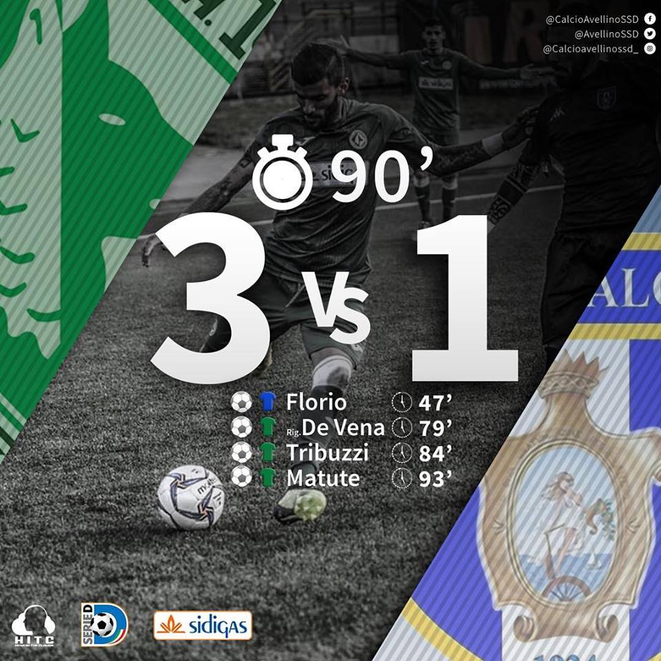 Sospiro di sollievo dei tifosi giunti Partenio-Lombardi; terza vittoria consecutiva per la formazione di Bucaro: domenica trasferta ad Anagni per continuare la rincorsa al vertice, lontano ancora 5 punti.