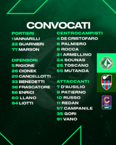 In vista del match tra Avellino e Catania, valido per la sedicesima giornata del campionato di serie C Now, mister Raffaele Biancolino ha diramato la seguente lista di convocati: