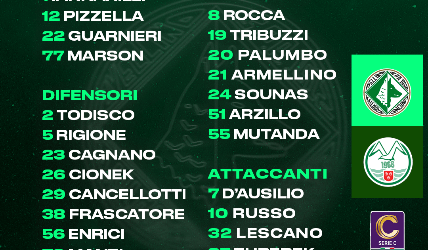Attaccanti: 7 D’Ausilio, 10 Russo, 32 Lescano, 35 Zuberek, 57 Campanile, 91 Panico.