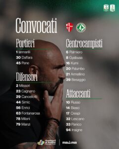 In vista del match tra Padova ed Avellino, in programma domani martedì 30 settembre 2025 alle ore 20:30, valido per la sesta giornata del campionato di Serie BKT, mister Raffaele Biancolino ha diramato la seguente lista di convocati: