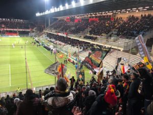 I TEMPO – Squadre subito aggressive, prime minuti di studi e Foggia che mette subito in tavola la specialità della casa con un paio di conclusioni dal limite che non impensieriscono Montipò. Al quarto d’ora Marinelli è costretto ad interrompere la gara per il comportamento di parte della tifoseria con l’esplosione di alcuni petardi dagli spalti. Circa due minuti di gioco fermo e l’avvertimento dello speaker al pubblico per rientrare nei ranghi ed evitare la sospensione. Ripreso il gioco alza il baricentro il Benevento: alla mezzora Crisetig ruba palla sulla trequarti e scalda i guantoni di Leali con una gran botta da fuori. Si gioca stabilmente nella metà campo avversaria, a cinque dal termine di mette in proprio Improta che fa secco Gerbo e penetra in area per scaricare il sinistro che non inquadra la porta. Risponde verso lo scadere il Foggia che sfiora il gol del vantaggio: Deli inventa dentro per Chiaretti che a tu per tu con Montipò calcia clamorosamente fuori. Sette minuti di un lungo recupero per le tante interruzioni, condito da tanta tensione con i rossoneri che reclamano un rigore per un contatto in area tra Caldirola e Gerbo. Il capitano viene espulso da Marinelli dopo un consulto con il suo assistente Pagliardini. Rosso per la reazione del giocatore che colpisce da terra gratuitamente l’avversario (Costa) con un calcetto. Foggia in inferiorità numerica praticamente per un intero tempo di gioco.