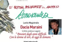 Maresa Calzone La lectio Magistralis del secondo appuntamento del 10° Festival Filosofico del Sannio, organizzato dall’Associazione culturale filosofica “Stregati da Sophia” è affidata a Dacia Maraini,la scrittrice ha relazionato sul...