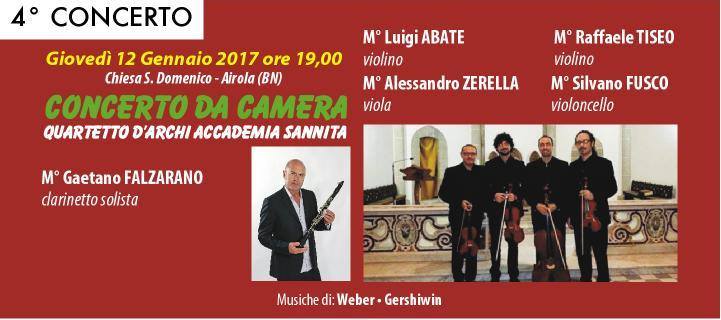 Il Quartetto d’Archi “Accademia Sannita” e il clarinettista solista M°Gaetano Falzarano chiuderanno con un concerto da camera, in programma per giovedì 12 gennaio 2016 presso la chiesa di San Domenico ad...